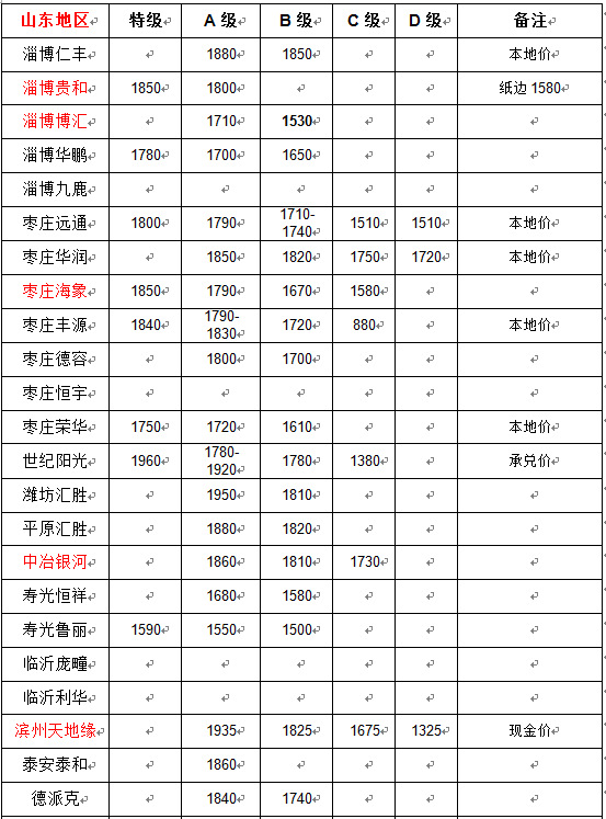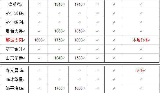 山东地区国废价格参照表