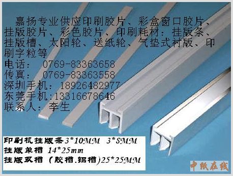 东莞市嘉扬包装材料有限公司 批发销售:PET拼版片基、挂版片基、挂版条、挂版PVC双槽、挂版铝合金双槽、印刷字粒、挂版纤维胶带等