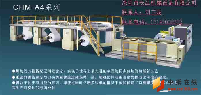 与德国e.c.h.will复印纸切纸机与包装机生产线及bielomatic复印纸分切机与包装生产线机器一样,长江机械(香港)有限公司(刘三超 :13147018202)-卷筒纸分切机、卷筒纸切纸机、卷筒分纸机、复印纸分切机、复印纸分纸机与包装生产线,其为深圳长江机械设备有限公司香港总部,深圳分切机|卷筒纸分切机|高速分切机|平张分切机|卷筒纸横切机|分纸机|滚筒纸分纸机|分纸机厂家-深圳长江机械设备有限公司,深圳长江机械设备有限公司源于香港,立足深圳,面向世界,全球最高端的分切机,切纸机厂家,有深圳分切机,卷筒纸分切机,高速分切机,分纸机,卷筒纸横切机,平张分切机,滚筒纸分纸机,分纸机等产品,咨询:13147018202,服务于全世界108个国家和地区,是分切机,切纸机更新的首选!"深圳分切机,卷筒纸分切机,高速分切机,分纸机,卷筒纸横切机,平张分切机,滚筒纸分纸机,分纸机厂家深圳长江机械设备有限公司所出产的(CHMA4 高精度双回旋A4复印纸切纸机)复印纸加工设备,它集电气自动化、PLC控制系统和机械自动化为一体的双回旋A4复印纸分切机,是将卷筒纸直接加工成A4复印纸的机器.