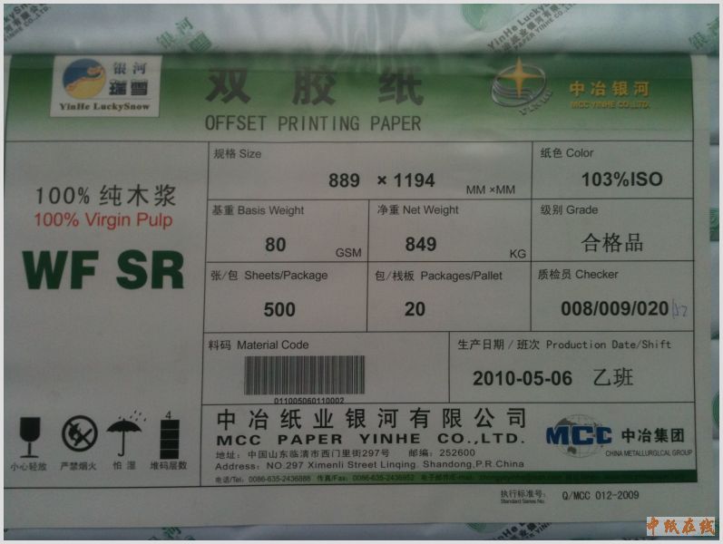 品牌:白云木浆纸 规格:889*1194 |